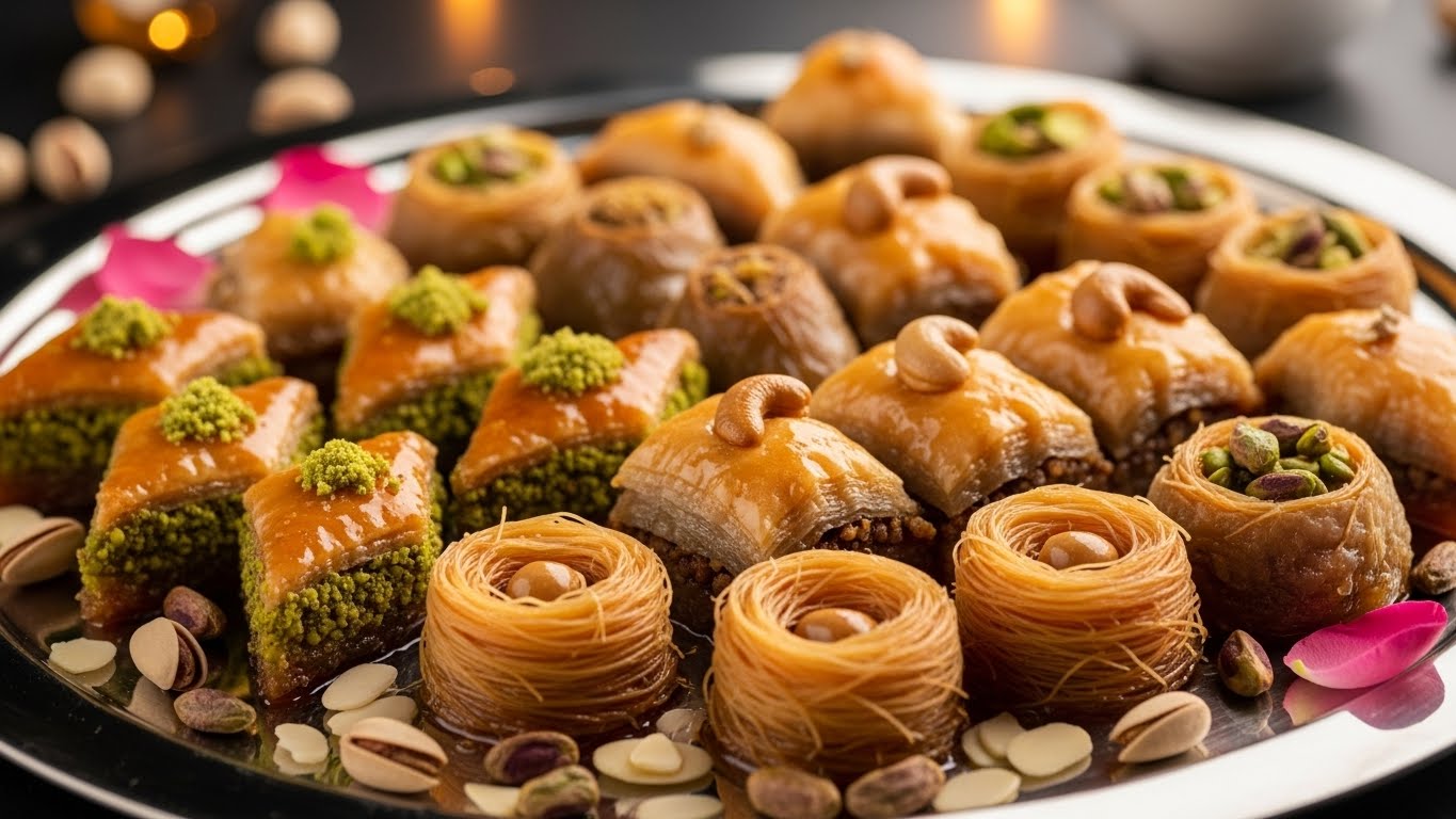 Maamoul is one of the most popular traditional Arab sweets, typically served during holidays and special occasions. It features small, beautifully engraved discs filled with pistachios. The secret to its distinction lies in the careful selection of ingredients and the method of preparing the dough and filling, giving it the authentic taste everyone loves.